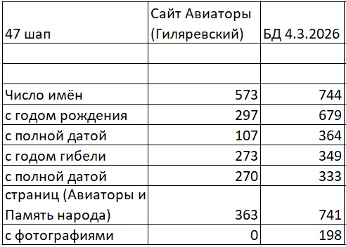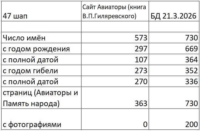 Используется обновляемая база данных по 47-му штурмовому авиаполку. Прежние данные на 28 августа 2021 г. — http://miaban.ru/47-28-8-2021/