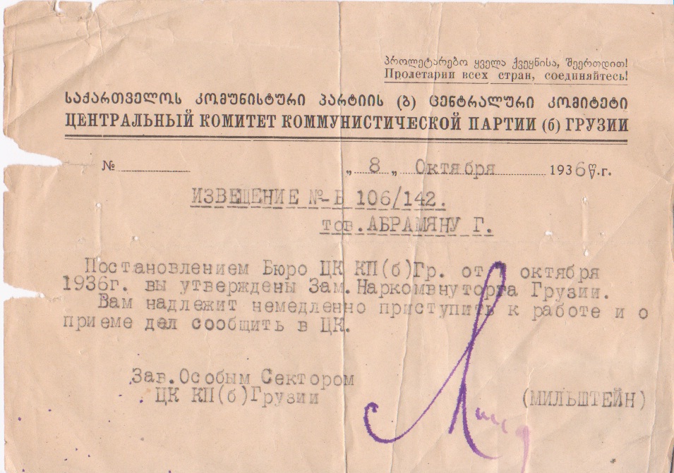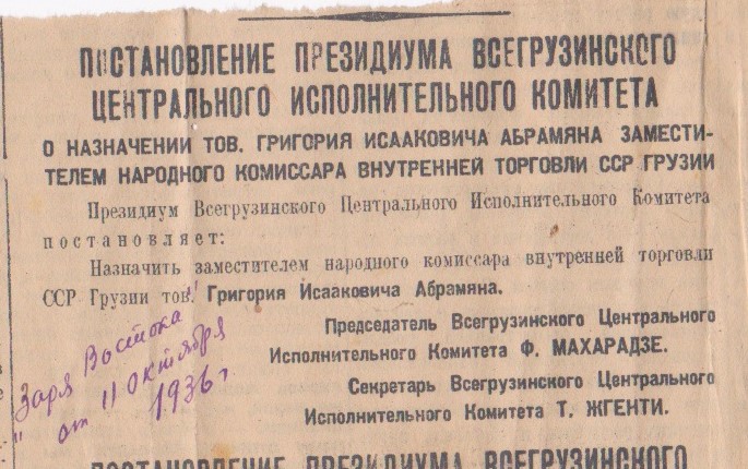 Григорий Абрамян (1899-1937). Документы 1936-1955 годов
