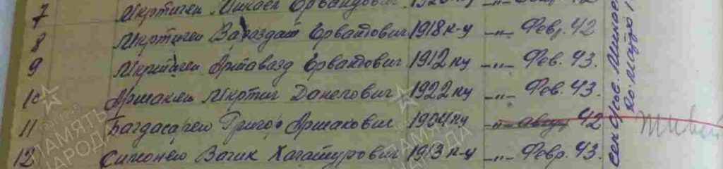 - Рядом в списке стоит имя Багдасаряна Григора Аршаковича, 1904 г. рожд.