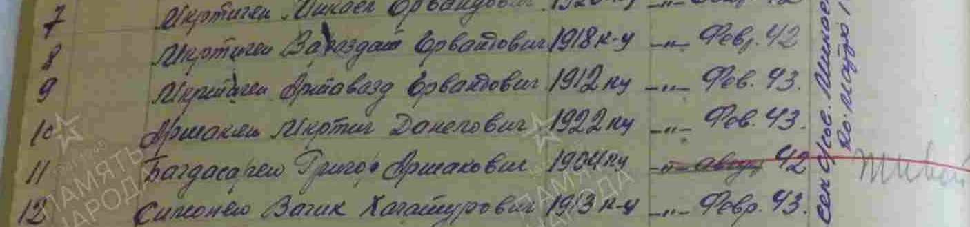- Рядом в списке стоит имя Багдасаряна Григора Аршаковича, 1904 г. рожд.