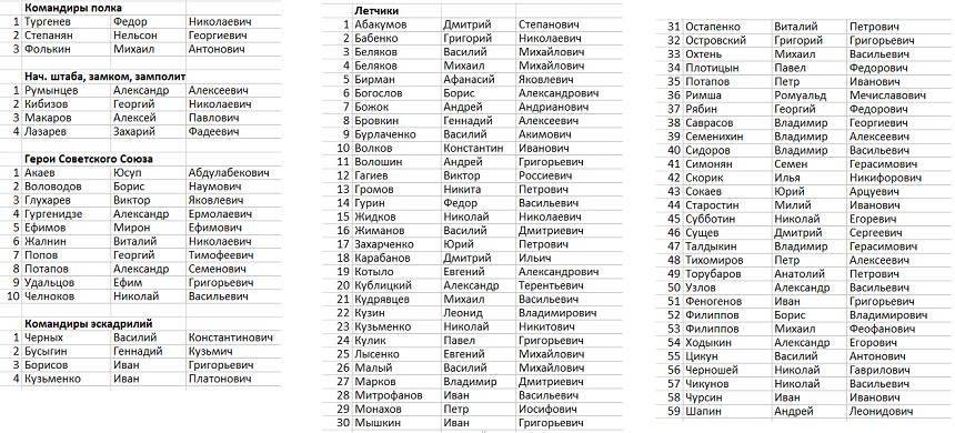 Привожу список по алфавиту. Через некоторое время начну собирать фотографии на лист.
